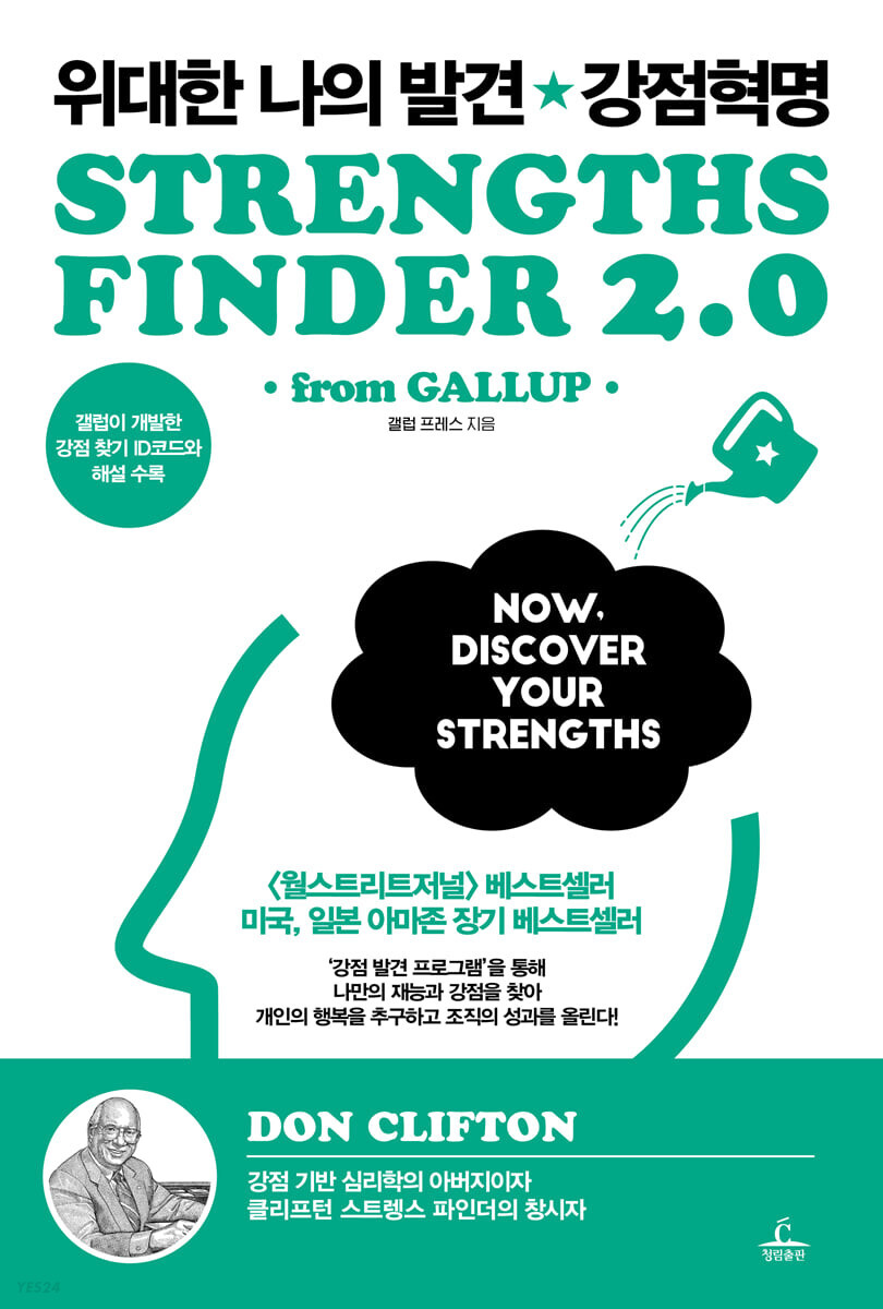 저자는 강점 심리학의 창시자 도널드 클리프턴 (Donald O. Clifton)이다. 1998년 스트렝스 파인더 진단과 34개 재능 테마를 창시했다. 2004년, 이 강점 진단의 공식 명칭을 ‘클리프턴 스트렝스 파인더Clifton StrengthsFinder’로 변경하였다. 약 40년에 걸친 이 연구에 뿌리를 둔 이 강점 진단을 통해 수많은 사람들이 단점만 고치려던 인생에서 벗어나 자신의 타고난 재능을 발견하고 개발할 수 있게 되었다. 뇌의 비밀은 '시냅스(synapse)'에 숨겨져 있으며, 시냅스란 뇌 세포(뉴런)끼리 서로 의사소통을 하기 위해서 연결한 부분을 일컫는다. 어떤 이유에서인지 모르겠지만, 자연은 실타래처럼 엮인 시냅스들을 끊어버리는데, 대략 열여섯 살이 되면, 뇌 회로의 절반이 끊겨 있게 된다. 이제 이 남은 회로가 더 강화되어 고속 회선이 된다. 그것이 바로 당신의 고유한 재능이 된다. 80억 인구의 뇌는 모두 달라서 같은 정보를 모두 80억 개의 방법으로 인식한다. 이제 스트렝스파인더 프로파일을 완성해 보자. 이제 StrengthsFinder닷컴으로 가라. 지시대로 실행하고 프로파일을 완성해 보면, 이제까지 맞지 않은 곳에 쏟아부었던 노력과 에너지를 회수해서 나의 강점에 제대로 사용하게 되는 엄청난 변화를 겪을 수 있게 될 것이다.