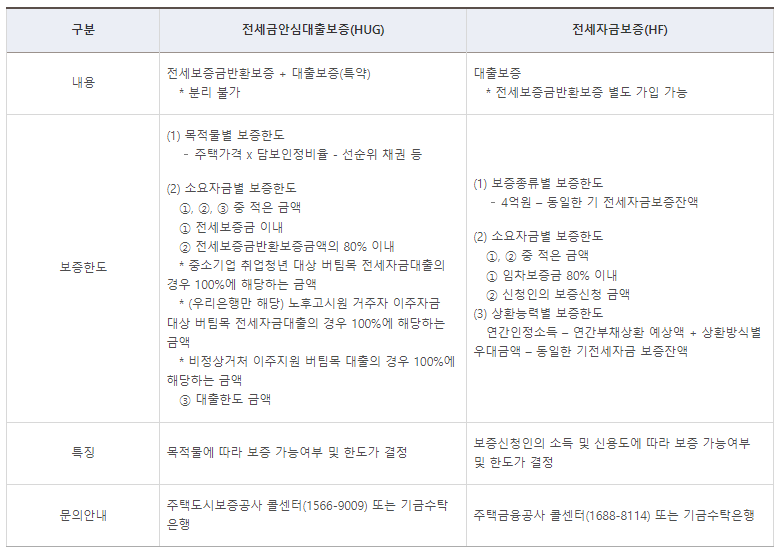 - 문의 : 전세금 안심대출 보증(HUG) : 주택도시보증공사콜센터(1566-9009)