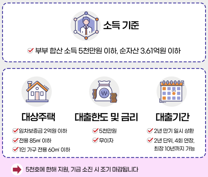 ◆ (소득) : 대출 신청인과 배우자의 합산 총소득이 5천만원 이하인 자