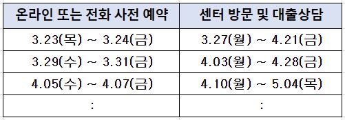 - 센터방문 및 대출상담 : 차주 (월) ~ 4주간
