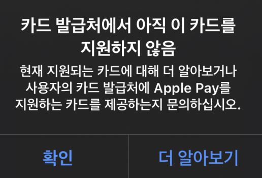 [애플페이 등록오류] 이 기기의 지역설정, 카드발급처에서 아직 이 카드를 지원하지 않음