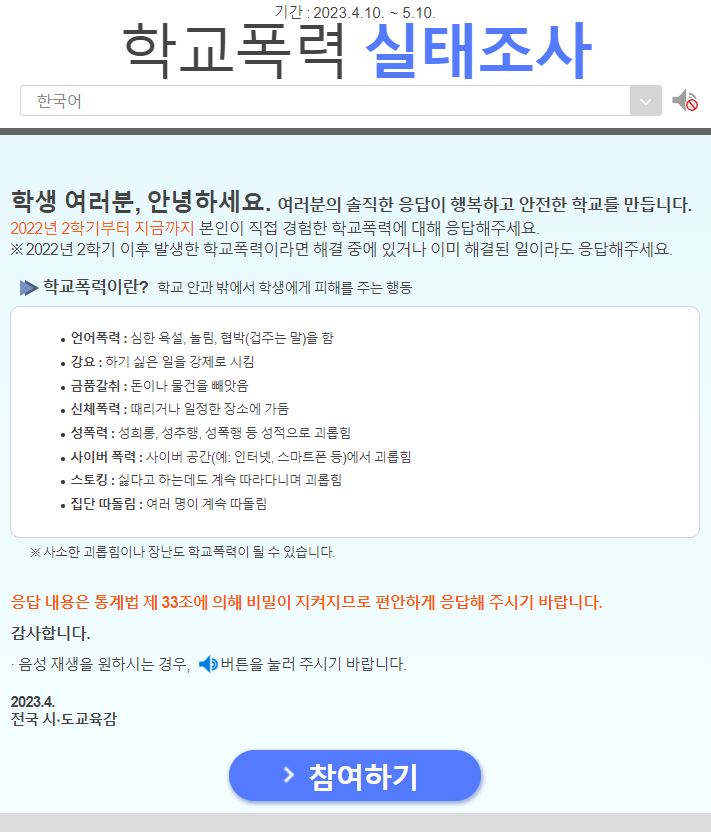 학교폭력실태조사 설문에 참여하는 방법