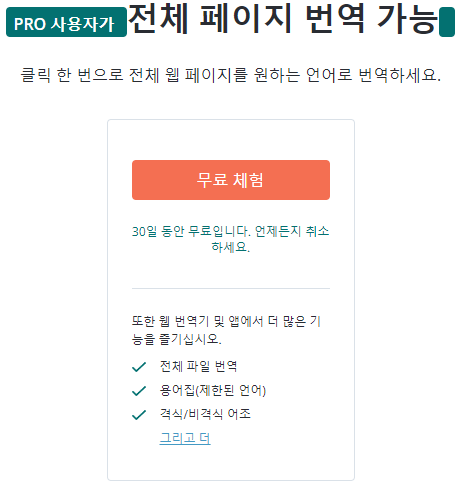 - 읽는 동안 전체 페이지 번역(Pro 구독자만 해당--> 유료)