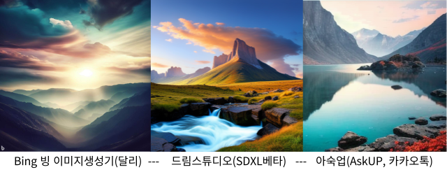 이미지 비교하기 달리DALL.E(MS 빙), 드림스튜디오(DreamStudio), 아숙업AskUP