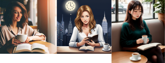 인물 : 카페에서 커피 한잔을 앞에 두고 책을 읽으며 앉아있는 여인