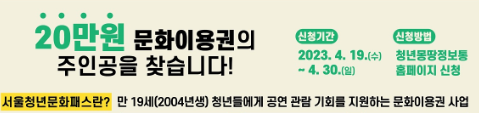 이번에 소개해드릴 것은 서울 청년문화패스라는 것을 소개해 드립니다.