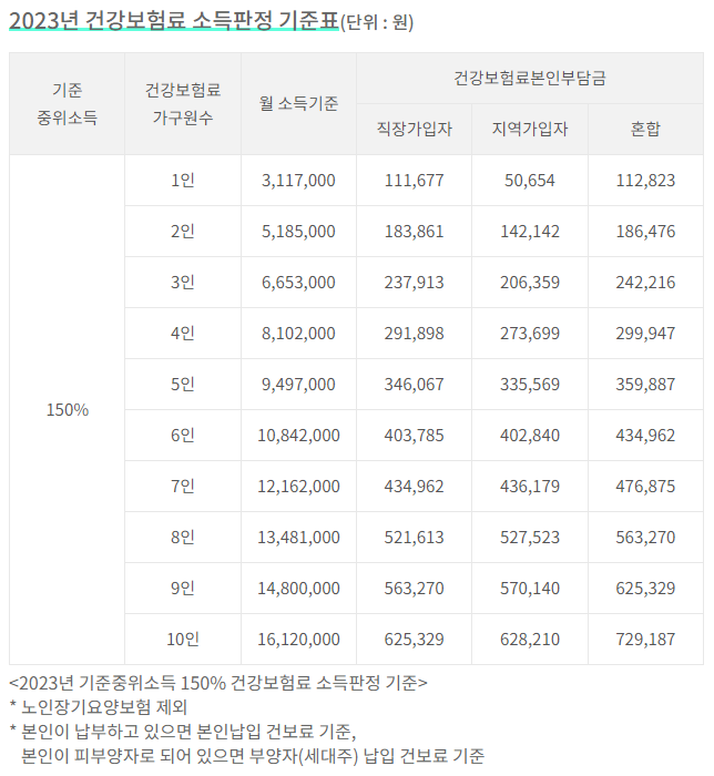 소득요건 : 중위소득 150% 이하(건강보험료 기준)