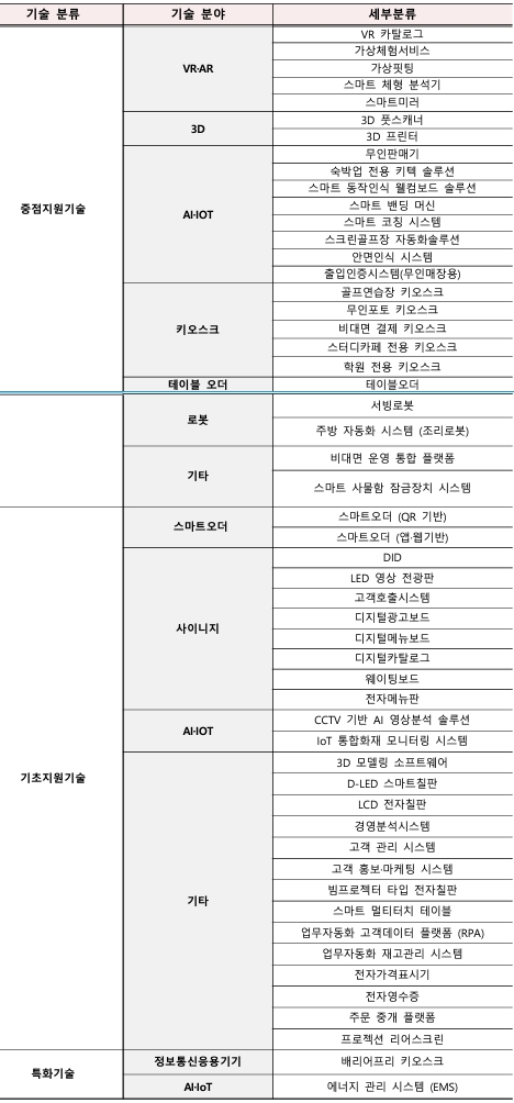 소상공인이 키오스크를 도입하거나, 자동 서빙 로봇 등을 도입하는 등의 신기술 도입을 돕습니다.