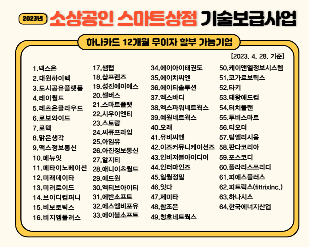 신청 지원한 소상공인 점포는 반드시 아래에 제시한 기술공급기업 중에서 희망기술을 선택합니다.