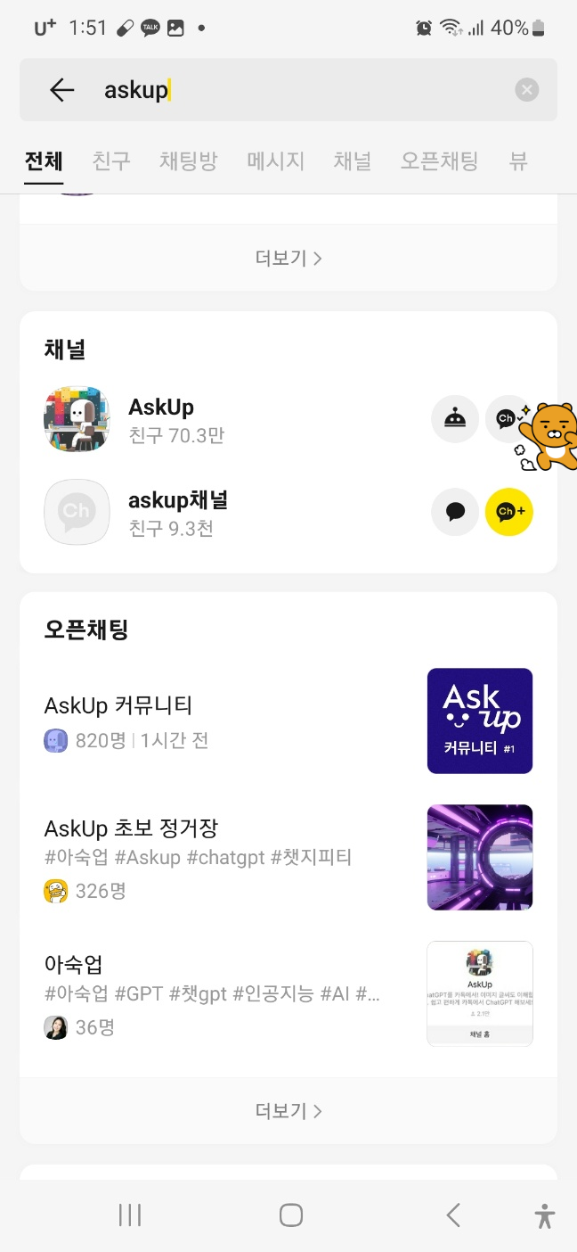 2. 검색된 askup을 채널추가 Ch 합니다.