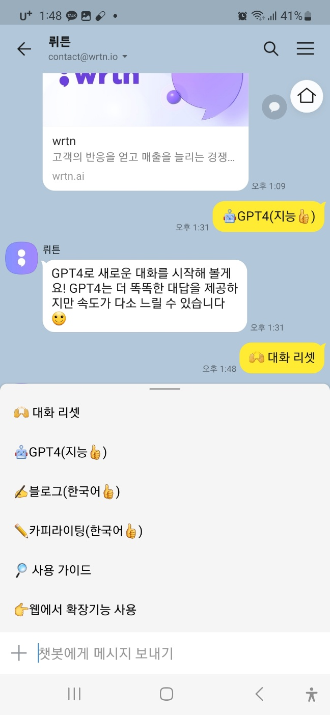 3. 카카오톡에 뤼튼 친구가 추가되서, 언제든지 채팅할 수 있게 되었습니다.!!