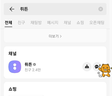 1. 카카오톡에서 이름 검색을 합니다 : 뤼튼2. 검색된 뤼튼을 채널추가 Ch 합니다.